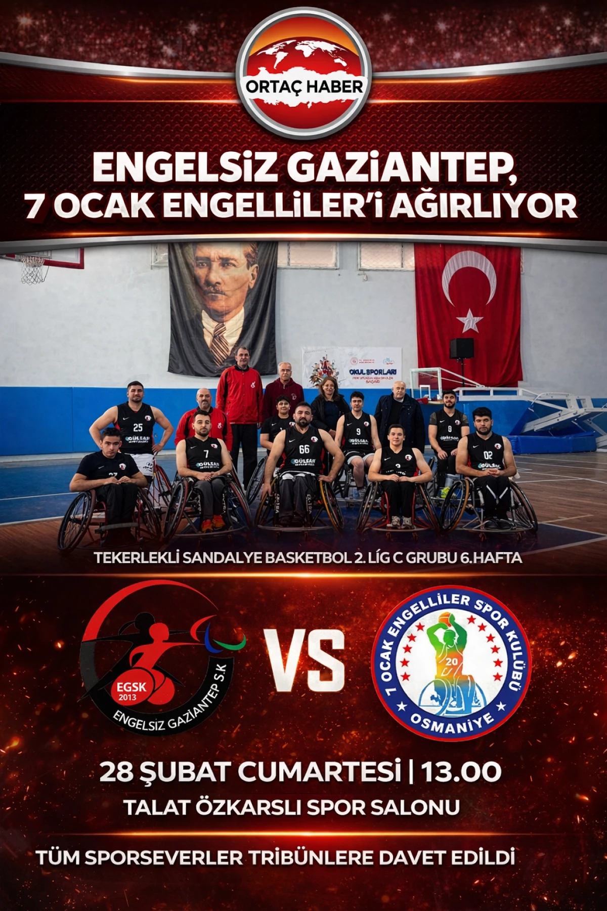 Tekerlekli Sandalye Basketbol 2. Lig C Grubu’nda heyecan 6. hafta karşılaşmalarıyla devam ediyor. Engelsiz Gaziantep Spor Kulübü, sahasında 7 Ocak Engelliler Spor Kulübü’nü konuk edecek.